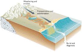 La sedimentación se produce cuando los productos procedentes de la erosión dejan de ser transportados y se depositan en zonas deprimidas de la corteza, formándose cuencas continentales u oceánicas).